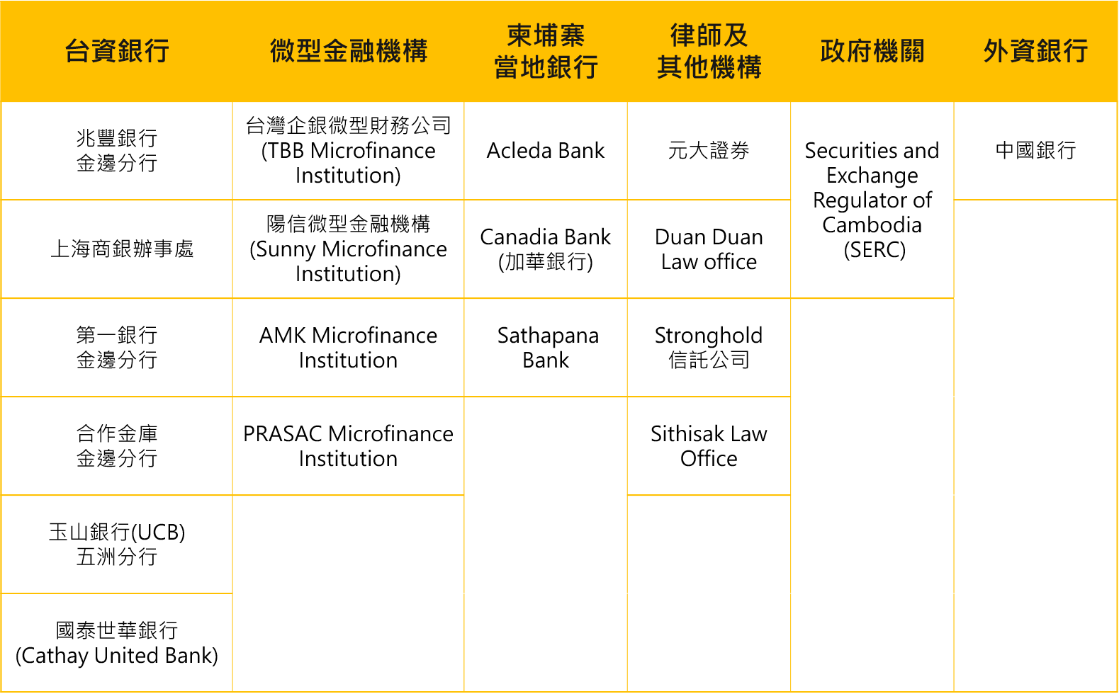 為進一步實地了解當地金融市場,2022 年 3 月中上旬,艾捷盛基金管理公司團隊積極拜訪了柬埔寨的台資銀行、當地商業銀行、微型金融機構、證券公司等共計 18 家 ( 詳細拜訪名單如表一所示 ) 之最高主管或業務相關主管,並且與柬埔寨的基金管理業監管機關、同時也是資本市場監管的最高機構 Securities and Exchange Regulator Cambodia ( SERC ) 舉行線上視訊會議,針對艾捷盛貨幣市場基金的發行及相關議題進行意見交流並提出建議,期望能盡速取得基金發行許可。