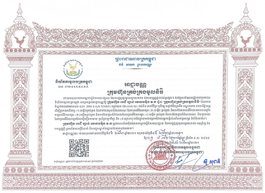 In 2019, AEGIES FUND MANAGEMENT PLC. was registered in Cambodia and obtained the local Securities and Exchange Regulator of Cambodia (SERC) chartered financial license on August 16, 2021. It is a leading independent property and asset management firm. We bring together large local banks, professional trust institutions, the world's top four accountants, and the cooperation of professional law firms, and introduce an experienced Taiwanese investment team to provide global investors with financial products that take into account safety and high returns.