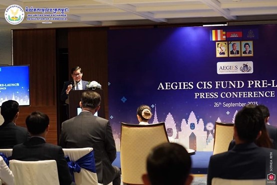 On September 26, 2023, Aegies Fund Management Plc. held a pre-launch press conference for its CIS Fund in Phnom Penh, Cambodia. Participants included H.E. Sou Socheat, General Director of the Cambodian Securities Exchange Commission, major local and international banks, accounting firms, law firms, and representatives of other strategic partners. Together, they witnessed this significant moment and looked forward to participating in the development opportunities in Cambodia's capital market.